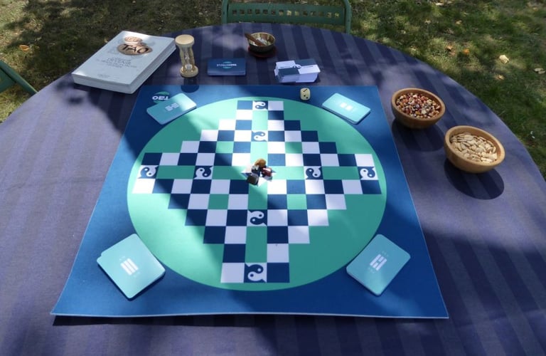 C'est un jeu collaboratif qui permet à chacun.e d'avancer vers sa quête personnelle grâce à l'intelligence collective. Au croisement du coaching / du développement personnel / de la communication Non Violente... c'est une expérience assez inédite et puissante. Pour en savoir plus